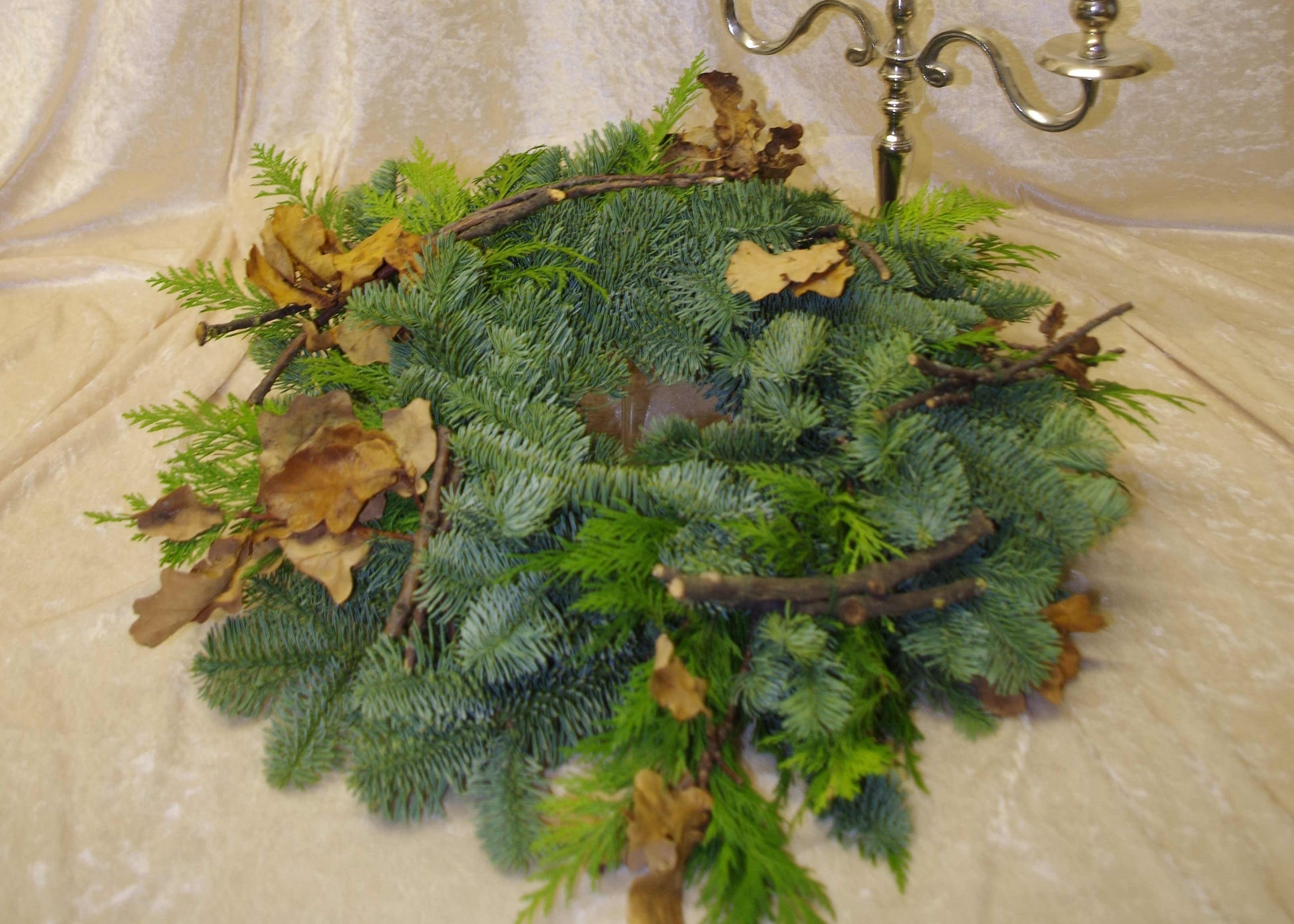 #8016 Rohkranz frische Tanne, Tuja und Eichenlaub