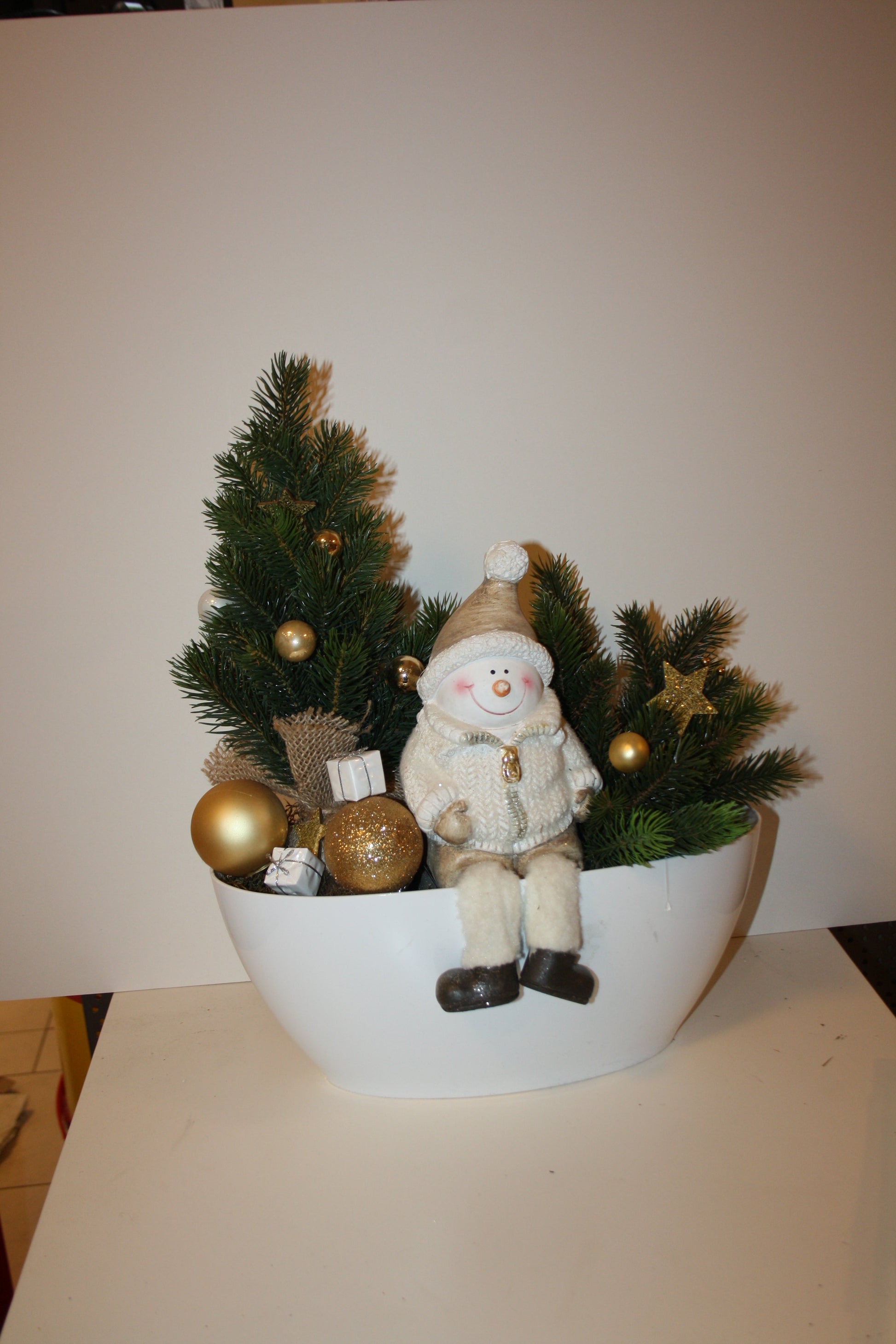#8052 Gesteck Kunsttanne mit Schneemann Einzelstück
