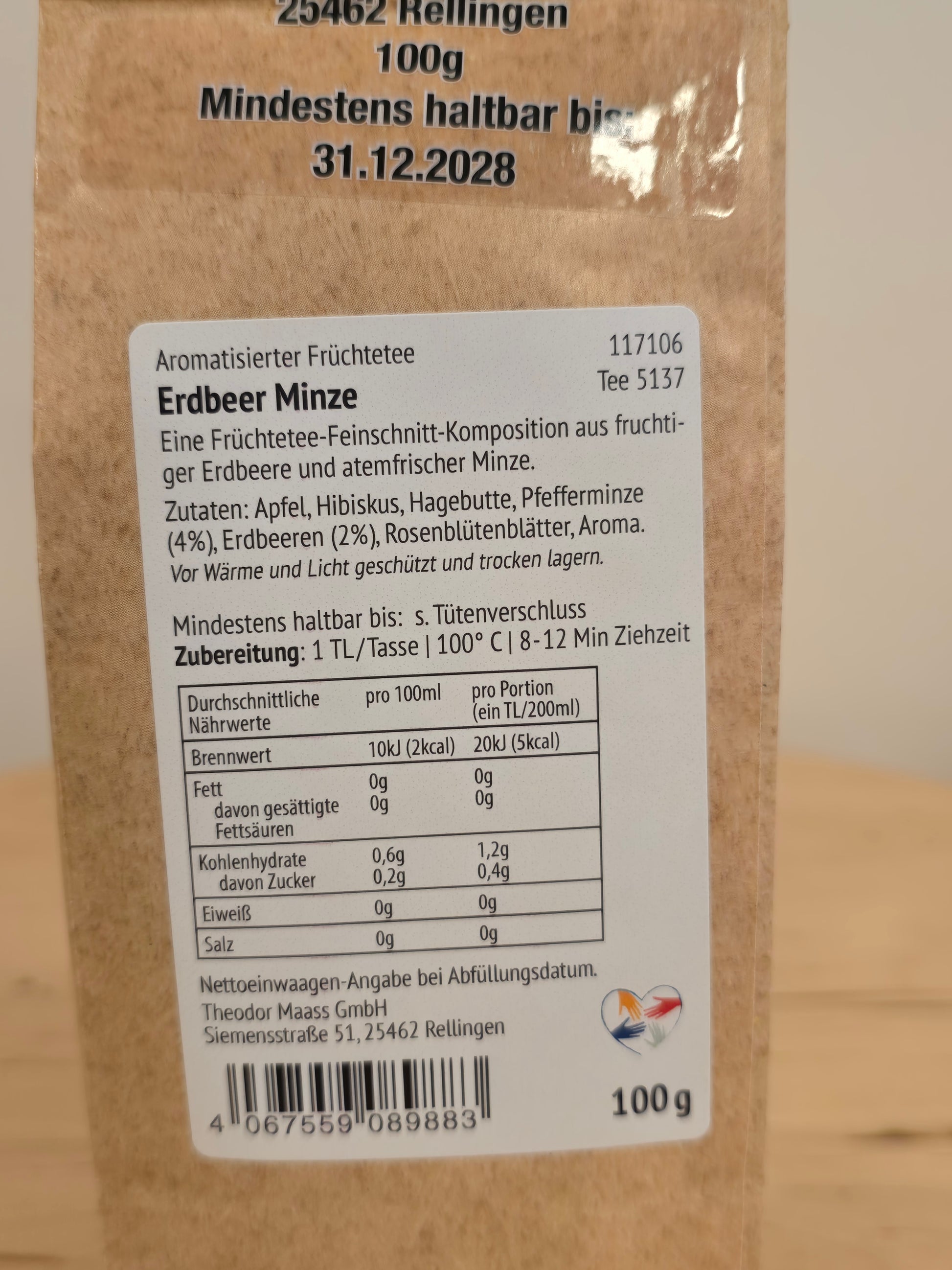 Leckere Früchteteemisachung aus frischer Minze und Erdbeere, ideales kleines Geschenk für gute Freunde und Bekannte.