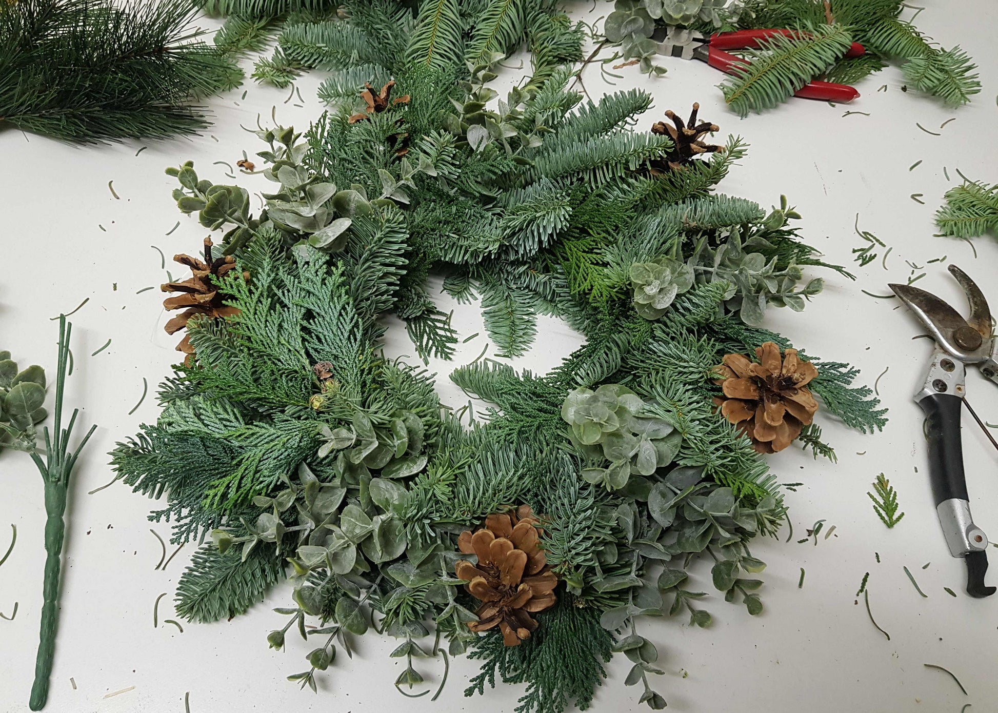 #8013 Rohkranz frische Tanne Eukalyptus und Zapfen Gr M